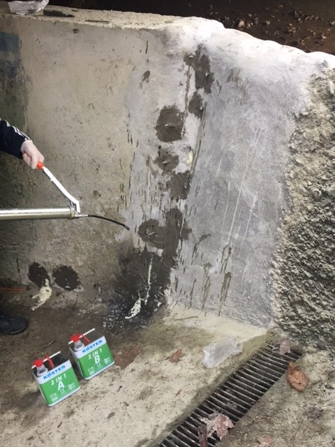Tesnjenje aktivnega vdora vode s Köster Waterstop in Kster KD 2, hitro reakcijskim prahom