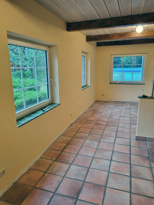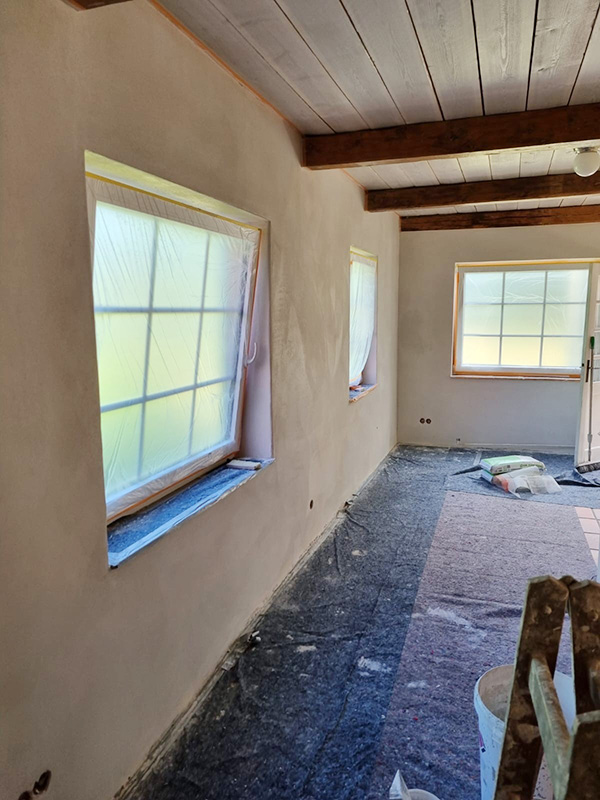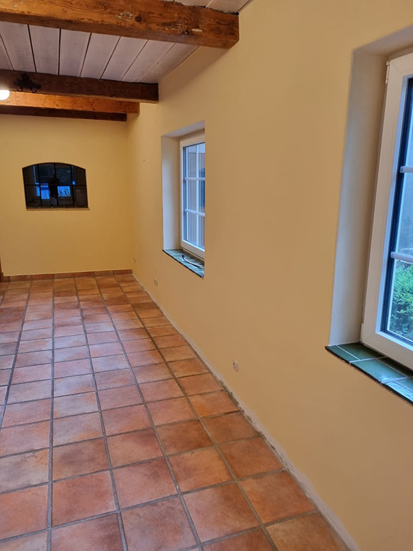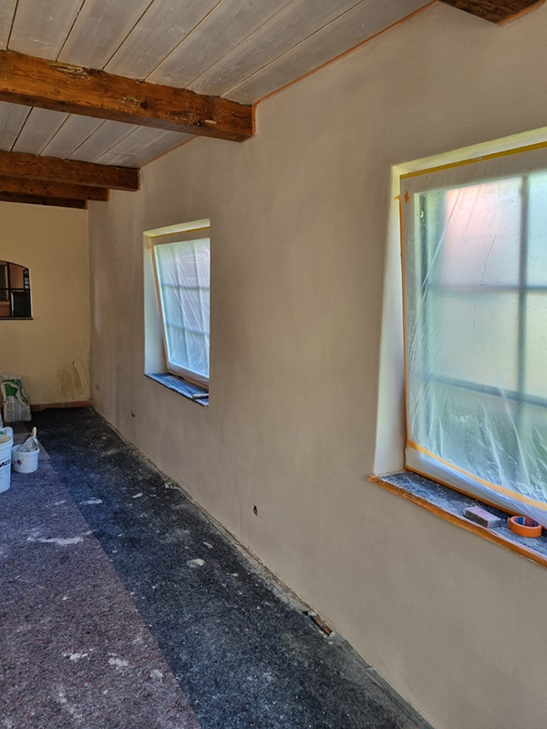 Das Haus ist zum Teil auf Feldsteinen und auf Ziegeln gemauert. Eine Horizontalsperre war nicht vorhanden, dadurch waren Schäden am Innenputz durch aufsteigende Feuchtigkeit vorhanden.